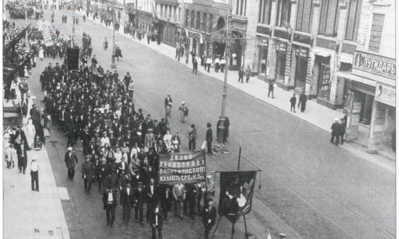 naar het Taurische paleis maar daar werden ze beschoten en vielen er enkelen doden. Op 5 juli publiceerde Lenin een artikel waarin stond dat de opstand beëindigd moest worden.