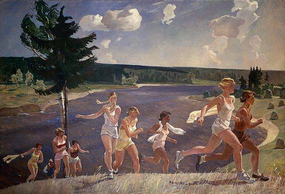 Ook werden er in de propaganda kunst vaak sportende mensen afgebeeld. Mensen in de Sovjet-Unie moesten namelijk sterk en gezond zijn.